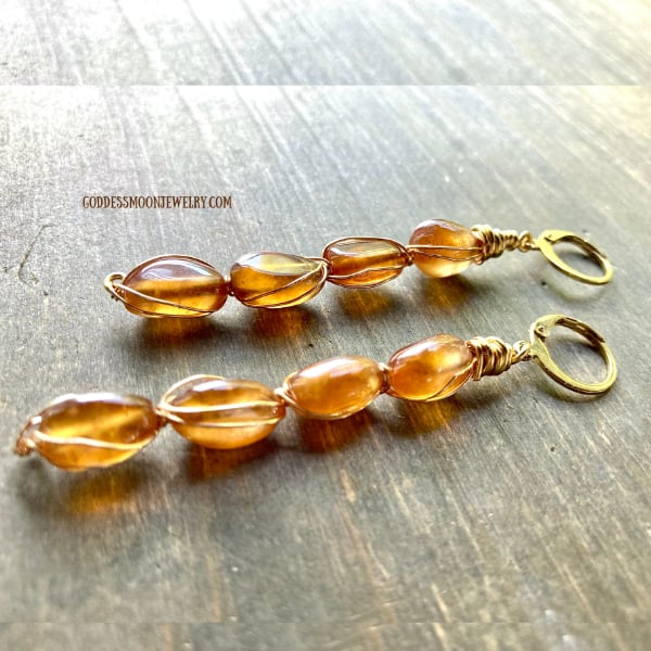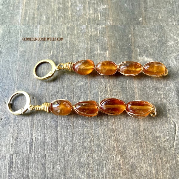 Infused with grounding energy and glowing with rich amber tones, these Hessonite Garnet Dangle Earrings are handcrafted with care and intention. Each pair features natural faceted gemstone beads, carefully wire-wrapped in gold-plated non-tarnish wire, offering elegant movement, radiant energy, and timeless beauty.