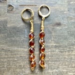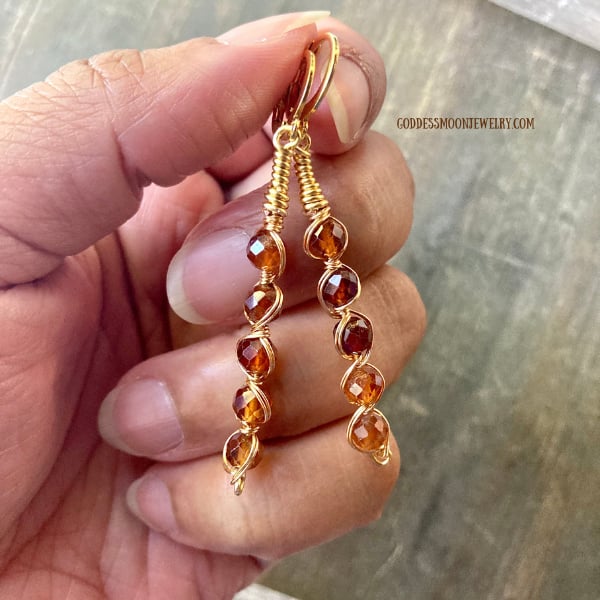 Crystal Dangle Earrings, Gold Wire Wrapped Earrings, Hessonite Garnet Stone, Made Per Order
