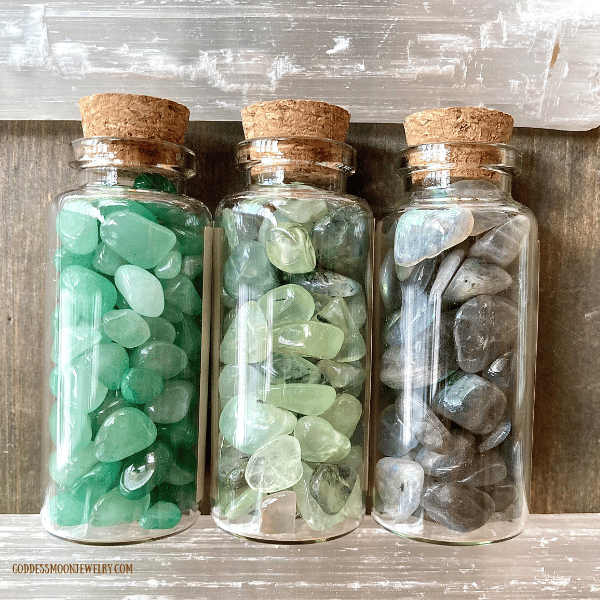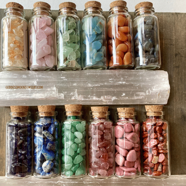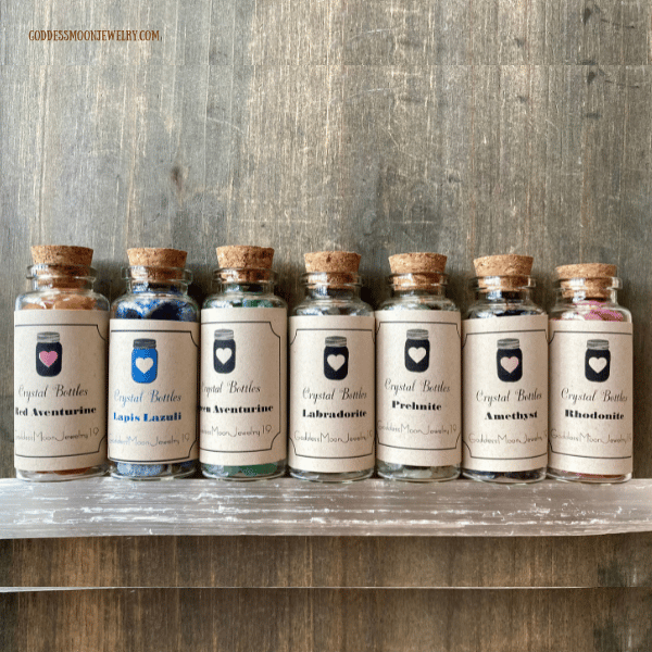 Carry the healing energy of your favorite crystals wherever you go with these beautifully handcrafted Crystal Gemstone Bottles. Each 30ml glass bottle is lovingly filled with your choice of authentic tumbled gemstones, making it a perfect spiritual gift, meditation tool, or personal energy talisman. Choose from 12 natural stones, each with its own unique energy and purpose.