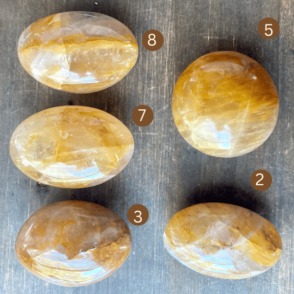 Golden Healer Quartz Palm Stones, Dendritic Golden Healer, For Healing, and Empowerment,