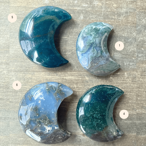 Moss Agate Crystal Moons, Green Moss Agate for Abundance, Healing & Earth Connection