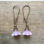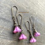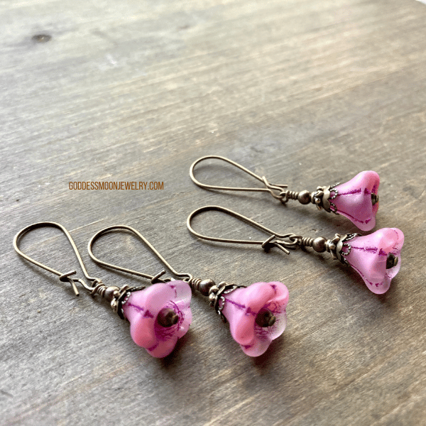 Boho Flower Earrings, Pink Flower Earrings, Handmade Glass Drop Earrings
