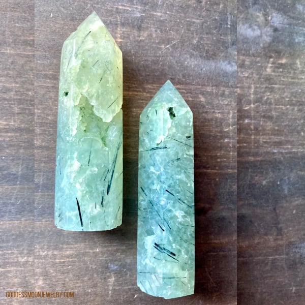 You will receive one (1) intuitively selected Prehnite with Epidote Crystal Tower.
