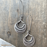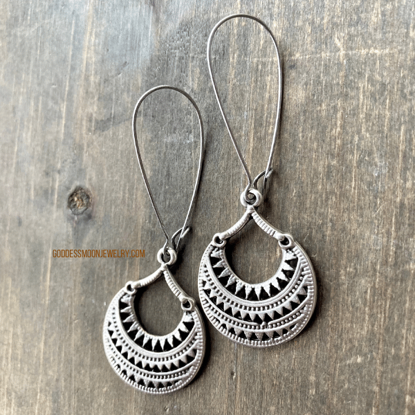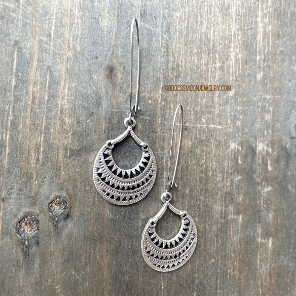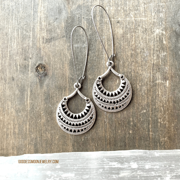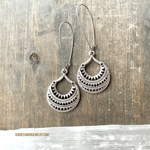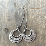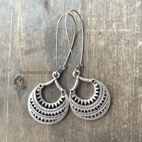Silver Mandala Fan Earrings, Etched Silver Earrings, Tribal Boho Festival Jewelry